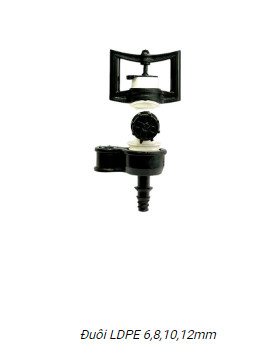 Kết nối với ống LDPE 6 - 7 - 10 -12 thông qua chuôi ren trong 17 ra ống LDPE 6 - 7 - 8 -10 -12mm